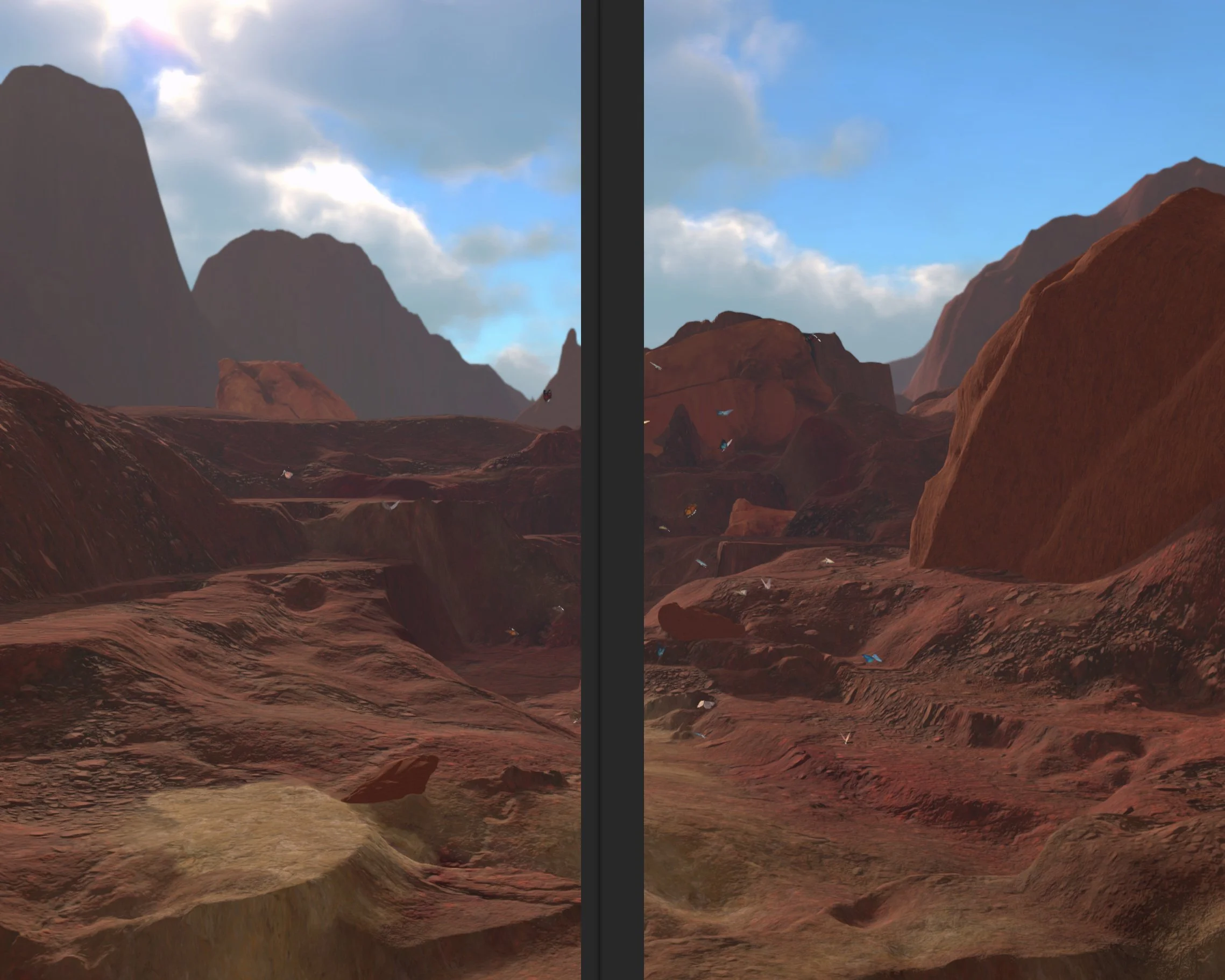 The ancient ecosystem was designed from the ground up. After an extensive exploration of the possible flora of this unique ecosystem we did a selection of trees, palms, lower plants and mushrooms. Each had a different function within the ecosystem and the interaction with the community.